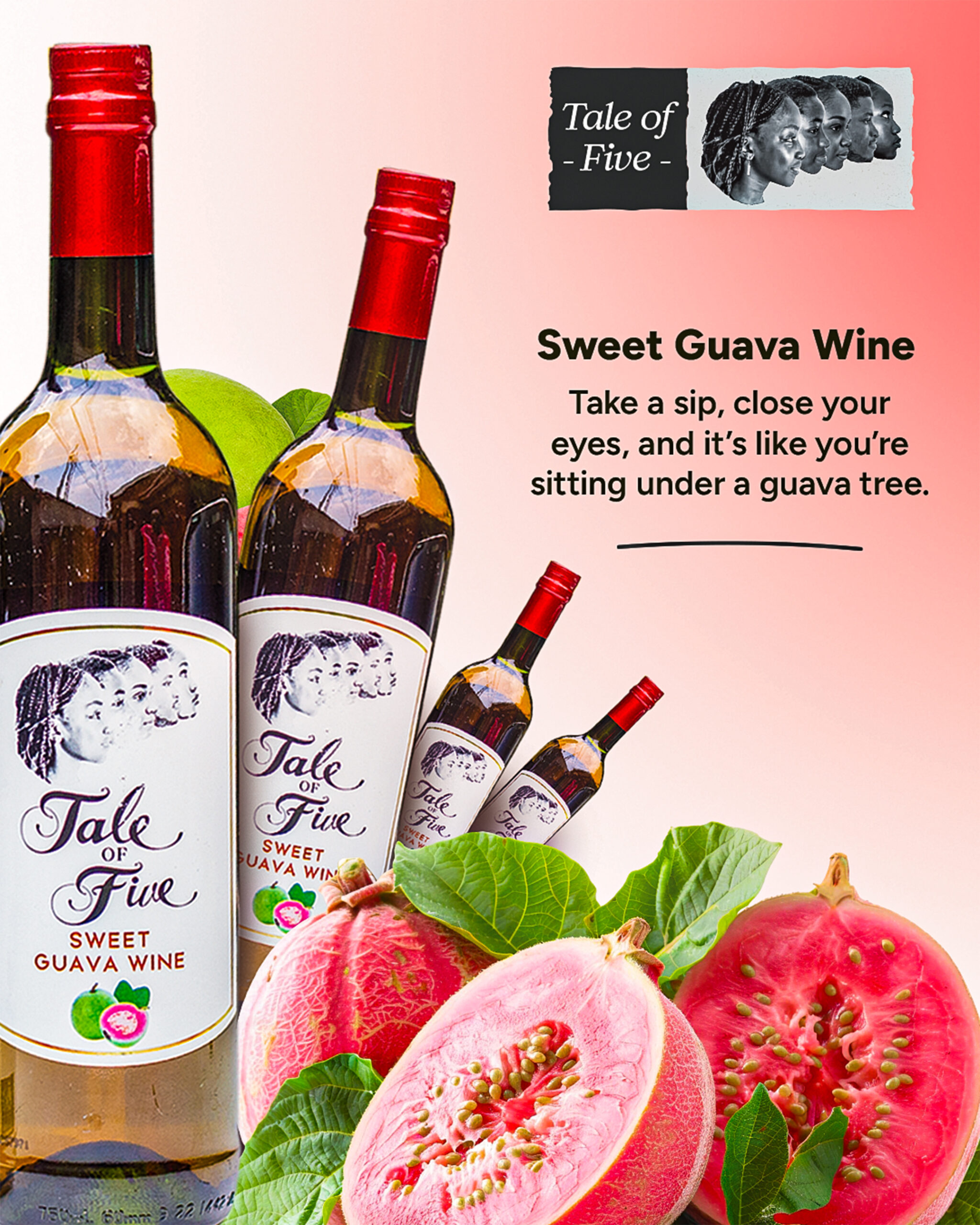 Tale of Five Sweet Guava Wine is a vibrant tropical fruit wine crafted from the naturally sweet and fragrant guava fruit. It delivers a smooth and refreshing taste with a rich fruity aroma and a well-balanced sweetness that lingers pleasantly on the palate.
